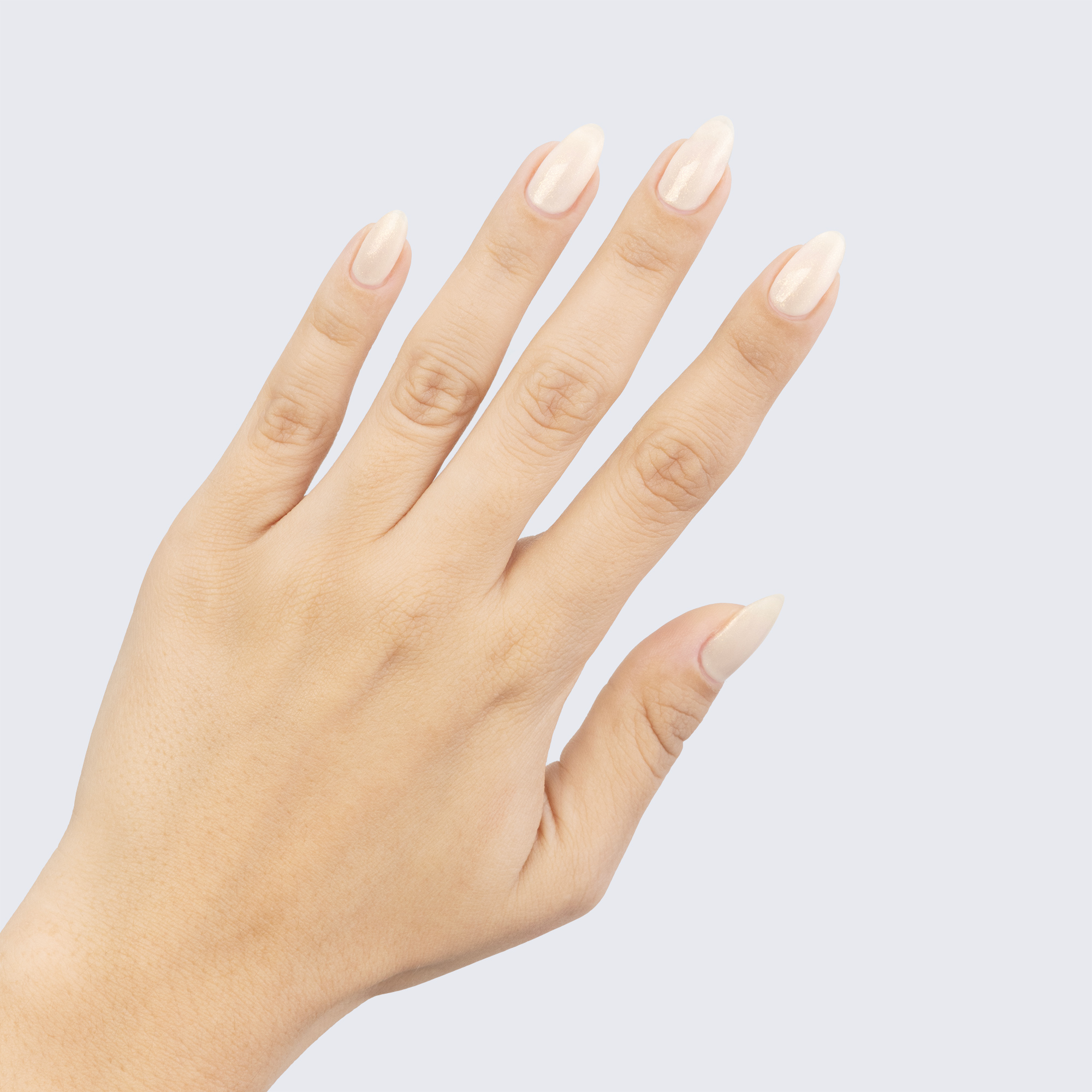 Cream-white with gold shimmer. Light. Semi-translucent. Warm undertone.