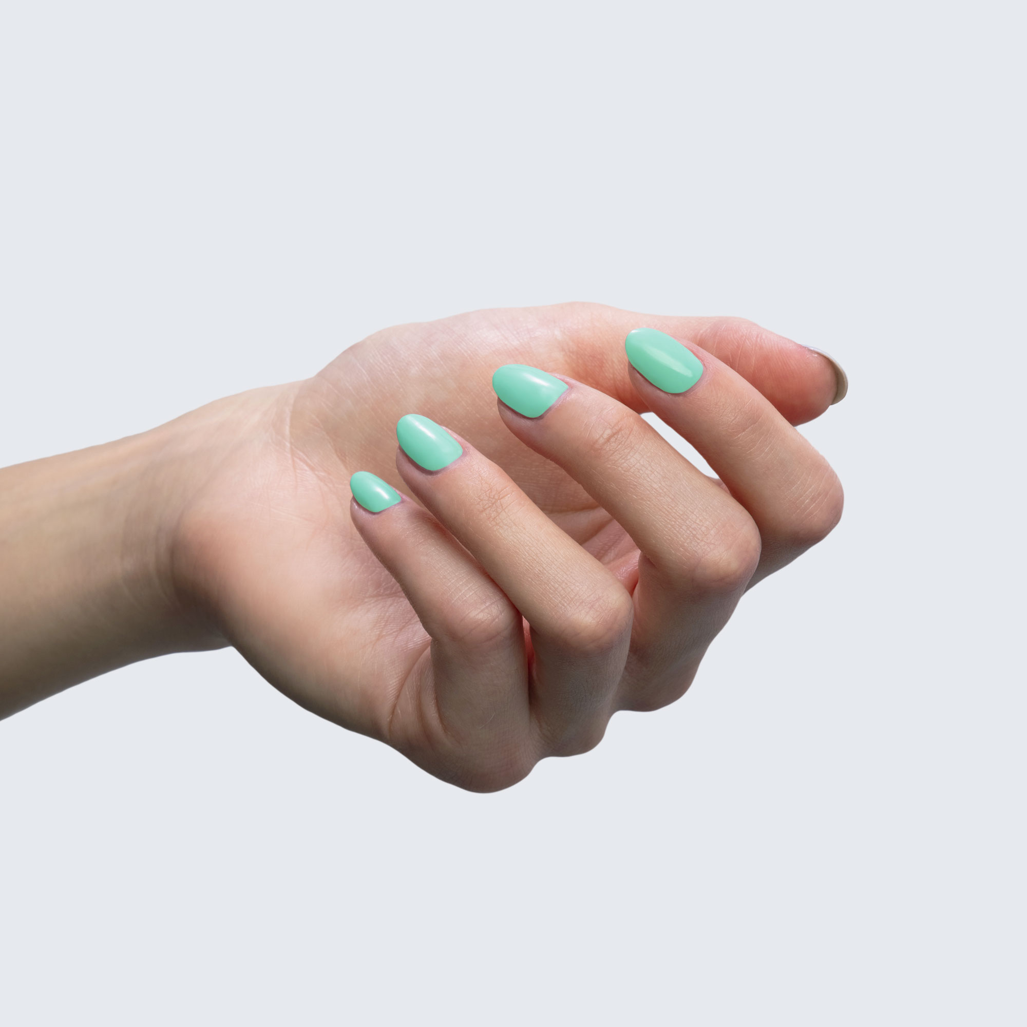 Seafoam green. Light. Bright. Opaque. Cool undertone.