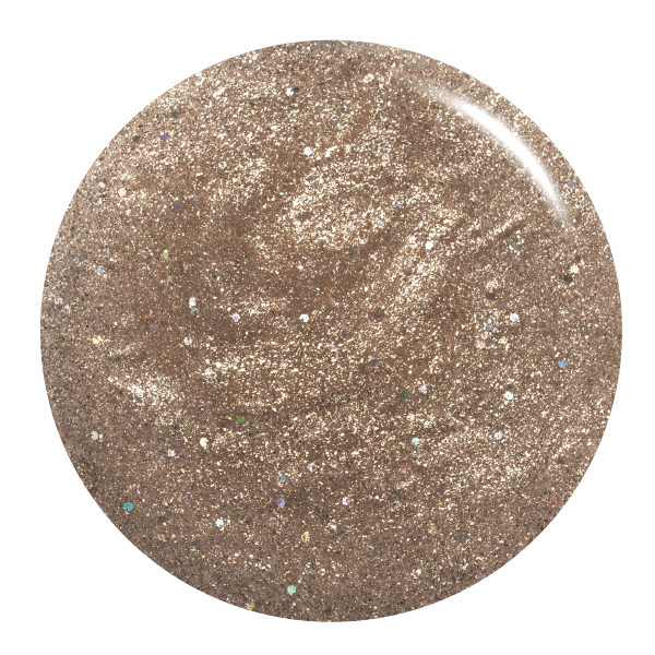 Sandy gold. Sheer. Sparkle. Warm undertone.